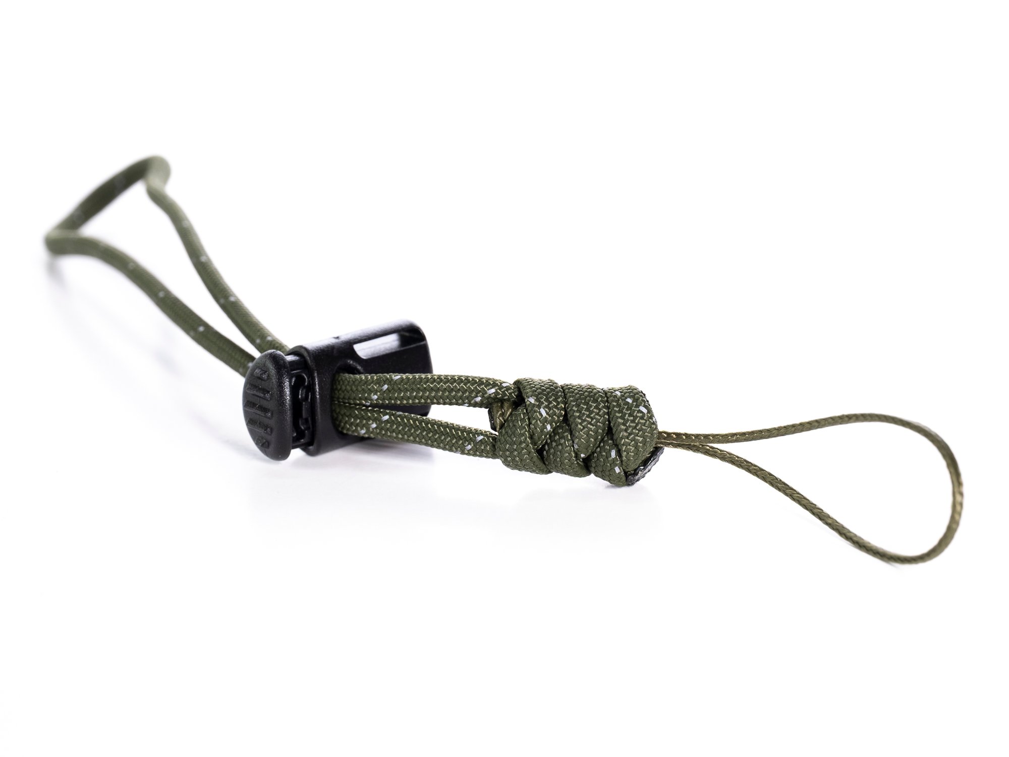 The Lanyard is constructed from 550 Paracord and Microcord, consisting of a main paracord wrist loop with a plastic cord lock to tighten to the wrist, and a microcord lanyard attachment loop to hitch through the release's attachment point. Tough enough for multiple days busting brush, and so light (0.2 ounces) you'll forget you're wearing it. With no excess length to snag on anything, it's as equally at home in the tree stand as it is on the mountain. Designed for hunting, with nothing extra to get in the way or fiddle with in the moment of truth, the minimalist design is also perfect for the 3D range.